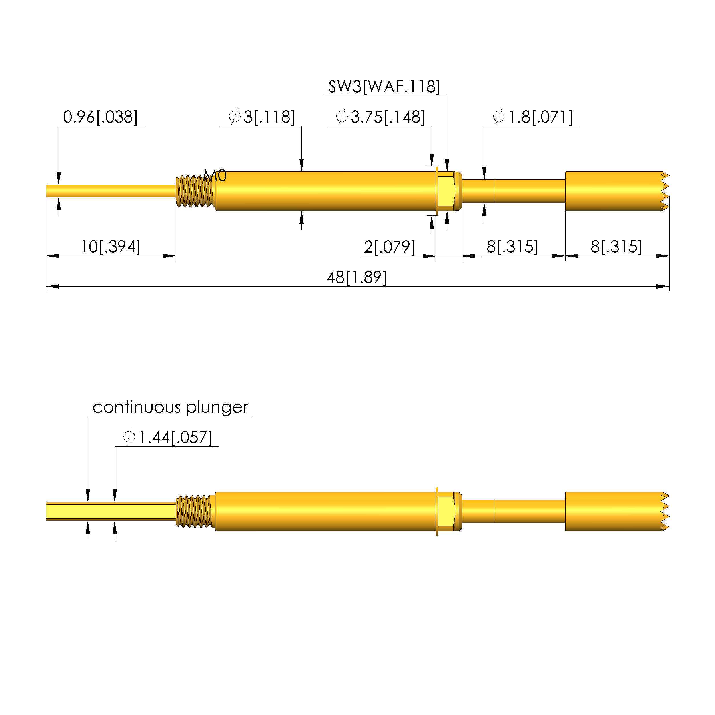 • Continuous plunger: ø1,44 x 0,95 x 10,0