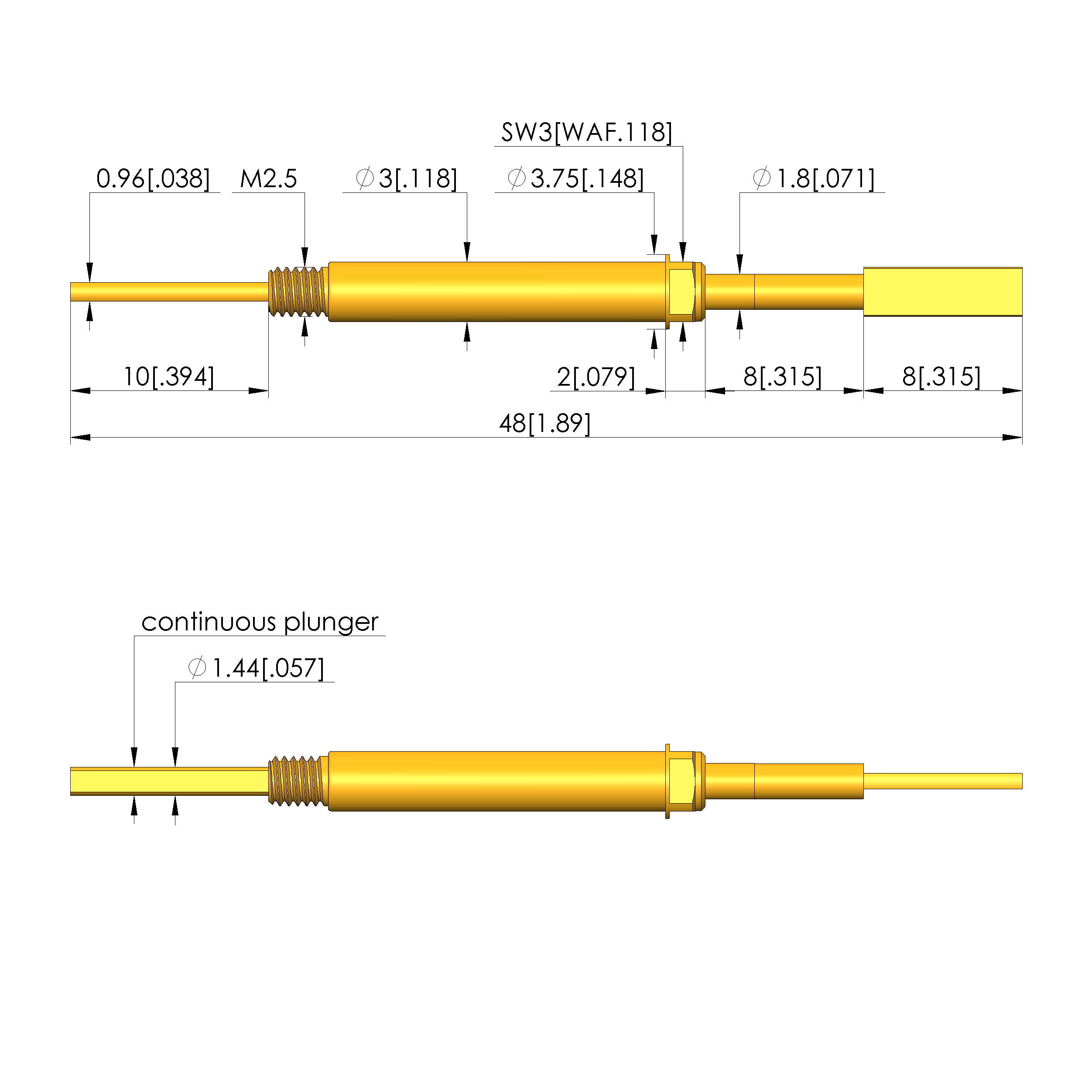 - Barrel diameter: 3 mm [.118 in]