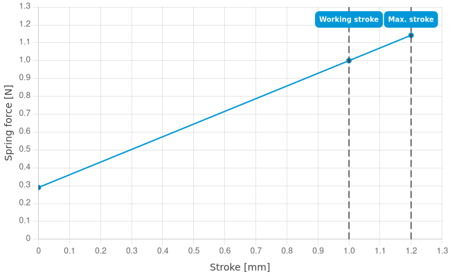 - Spring force at working stroke: 1 N [3.59 ozf]
