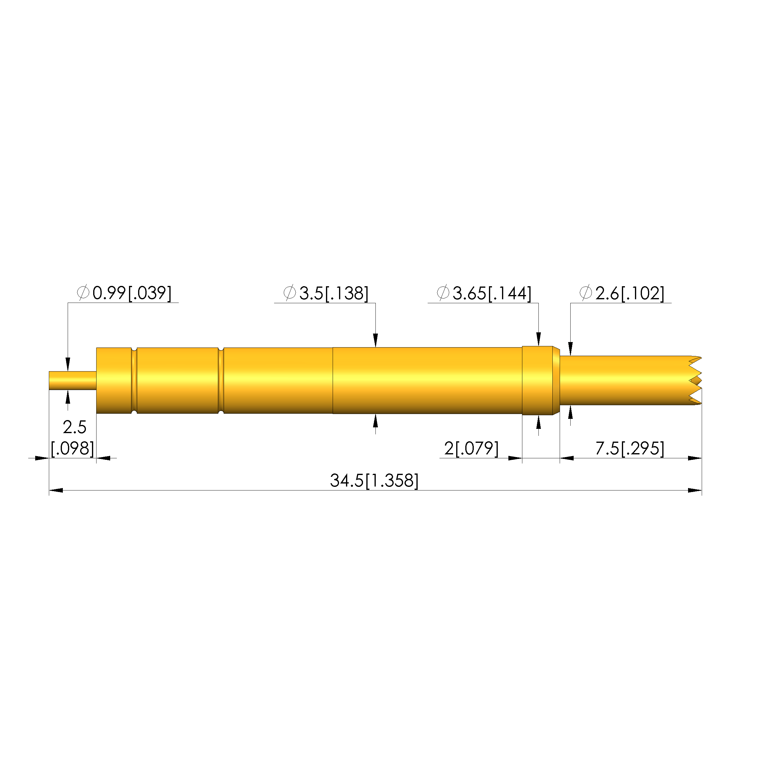 | Total length: | 34.5 mm [1.35 in] |
