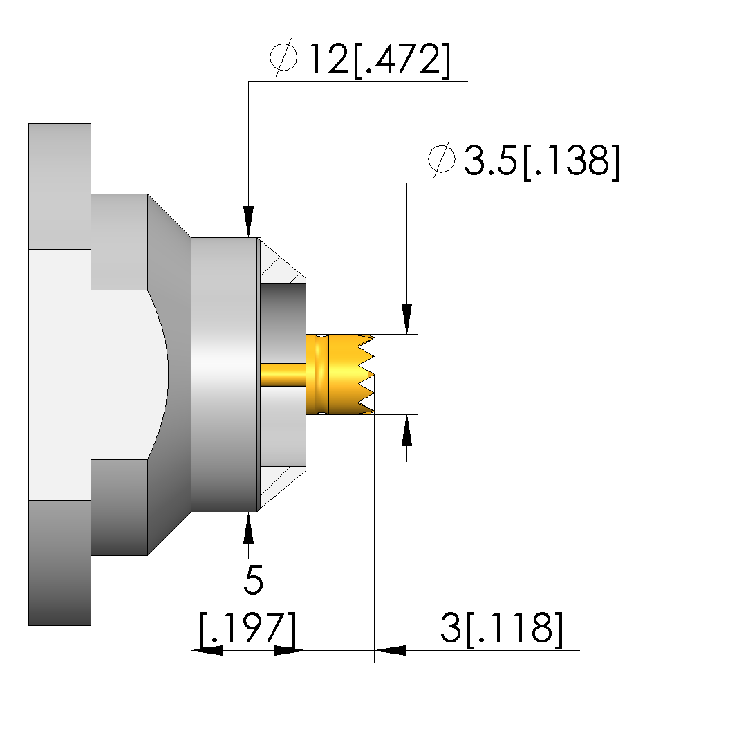 - Outer conductor tip style diameter: 12 mm [.472 in]