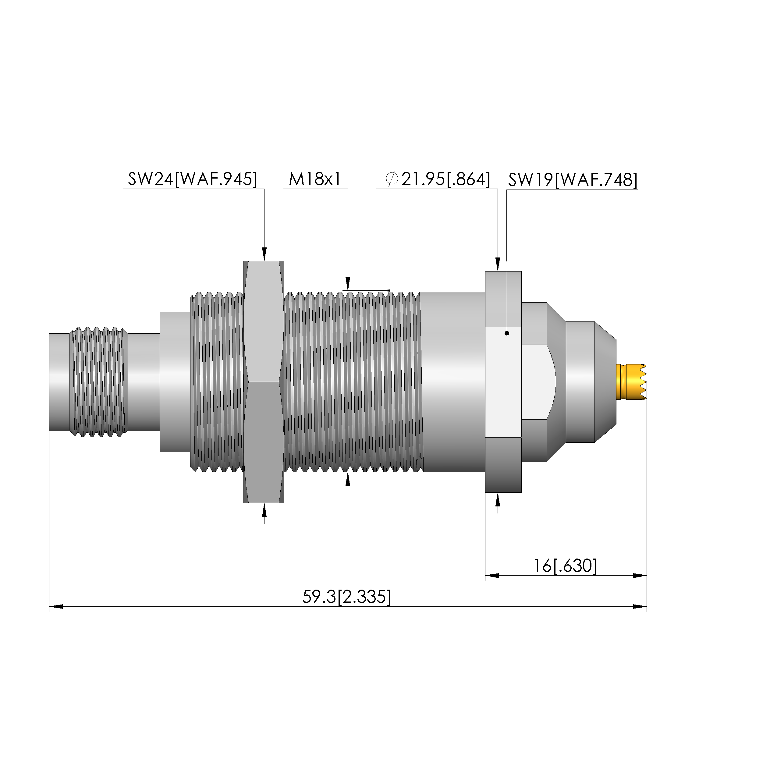 - Inner conductor maximum stroke: 5.3 mm [.208 in]