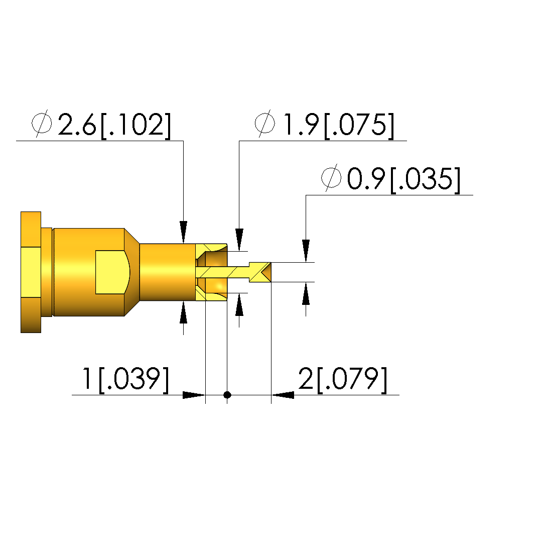 • Outer conductor tip style diameter: 2.6 mm [.102 in]