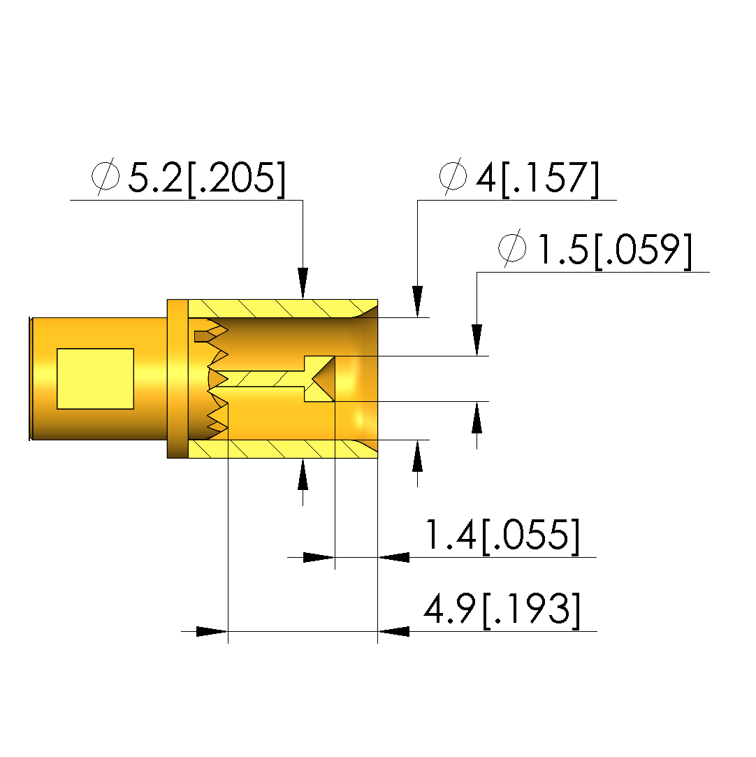 - Outer conductor tip style diameter: 5.2 mm [.204 in]