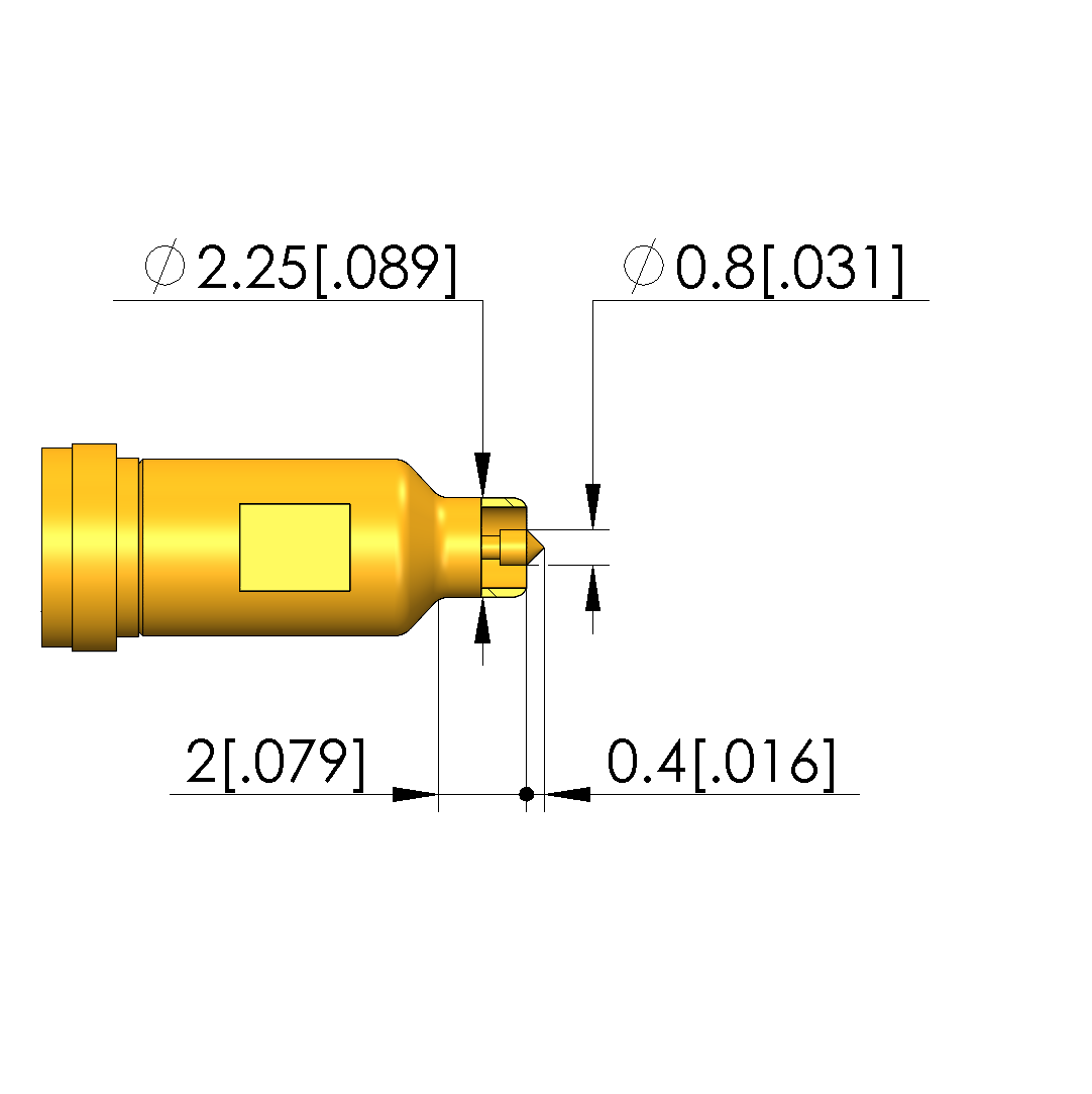 - Outer conductor tip style diameter: 2.25 mm [.088 in]