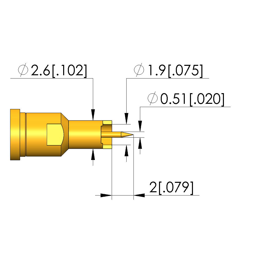 • Outer conductor tip style diameter: 2.6 mm [.102 in]