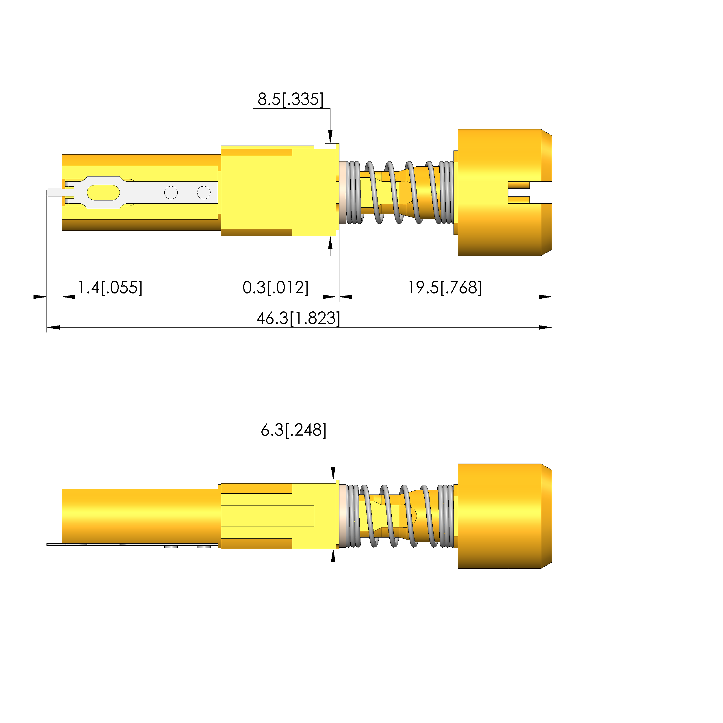 - Spring force of each inner conductor at working stroke: 1 N [3.59 ozf]