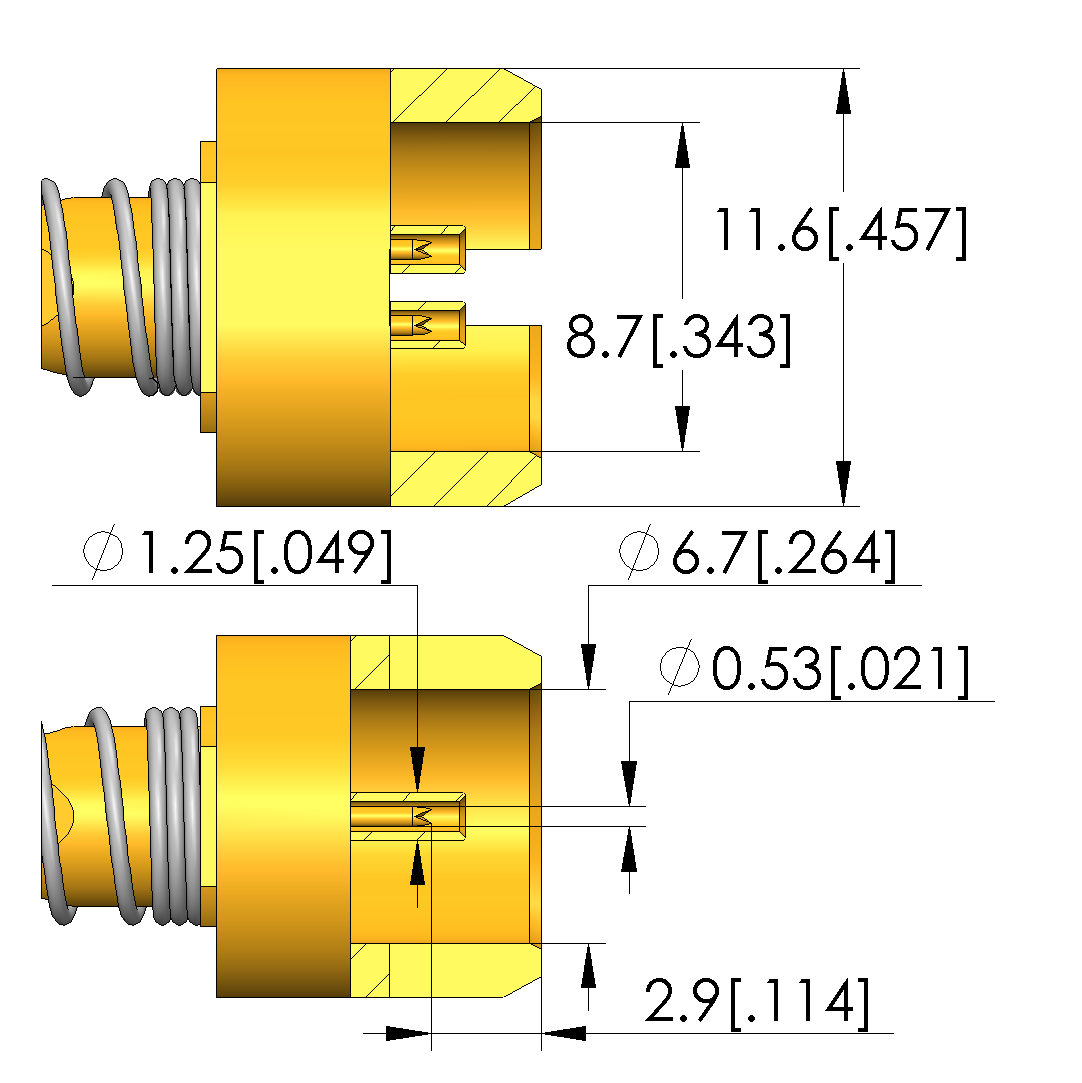 - Outer conductor tip style diameter: 11.6 mm [.456 in]