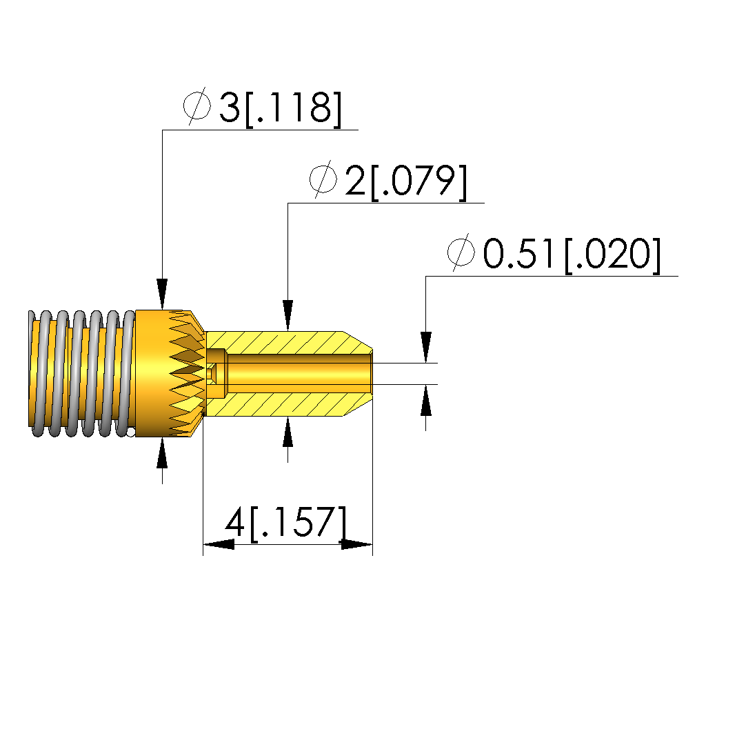 - Inner conductor tip style diameter: 0.51 mm [.02 in]