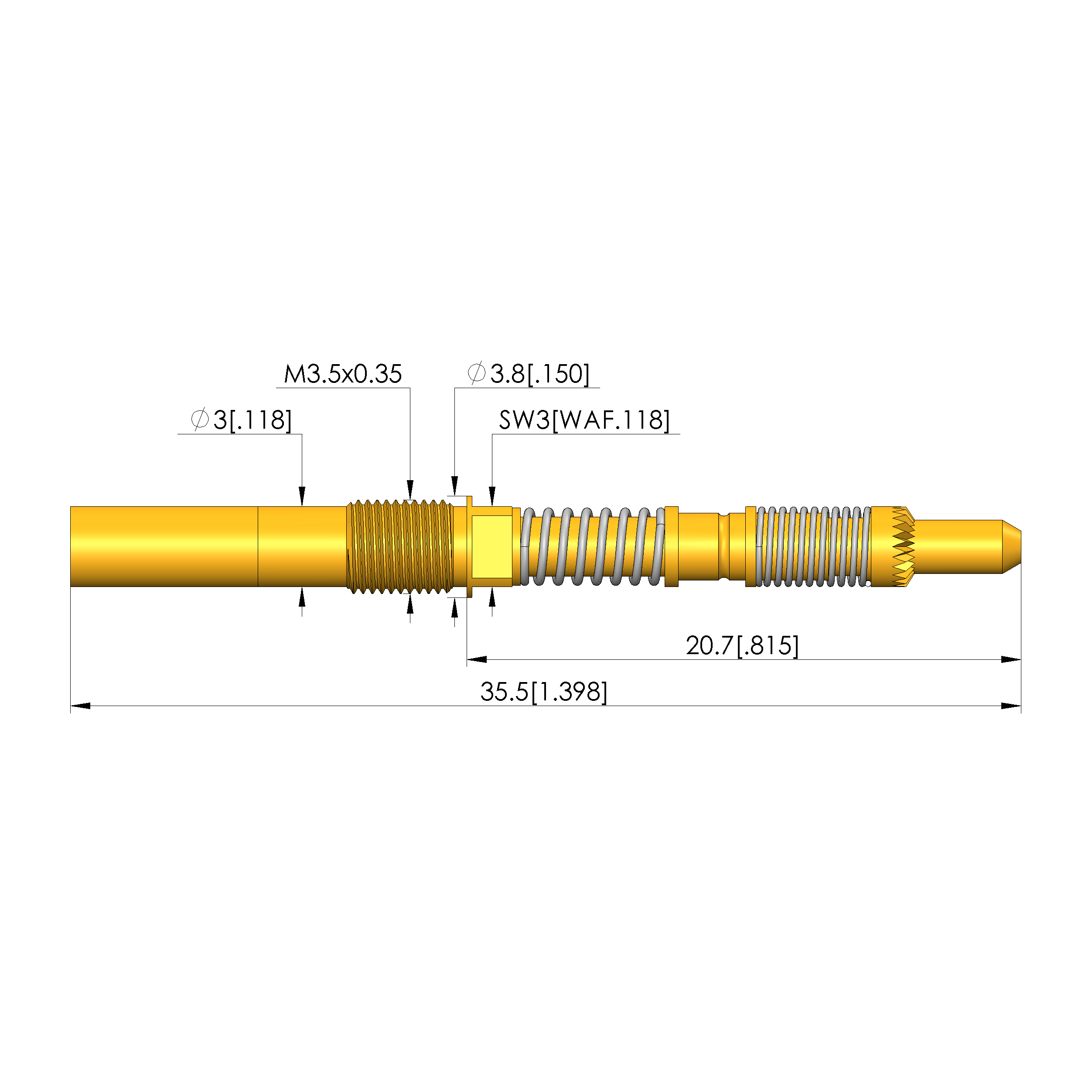 - Spring force of each inner conductor at working stroke: 1 N [3.59 ozf]