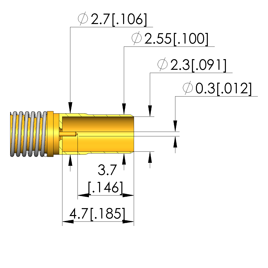 - Outer conductor tip style diameter: 2.7 mm [.106 in]