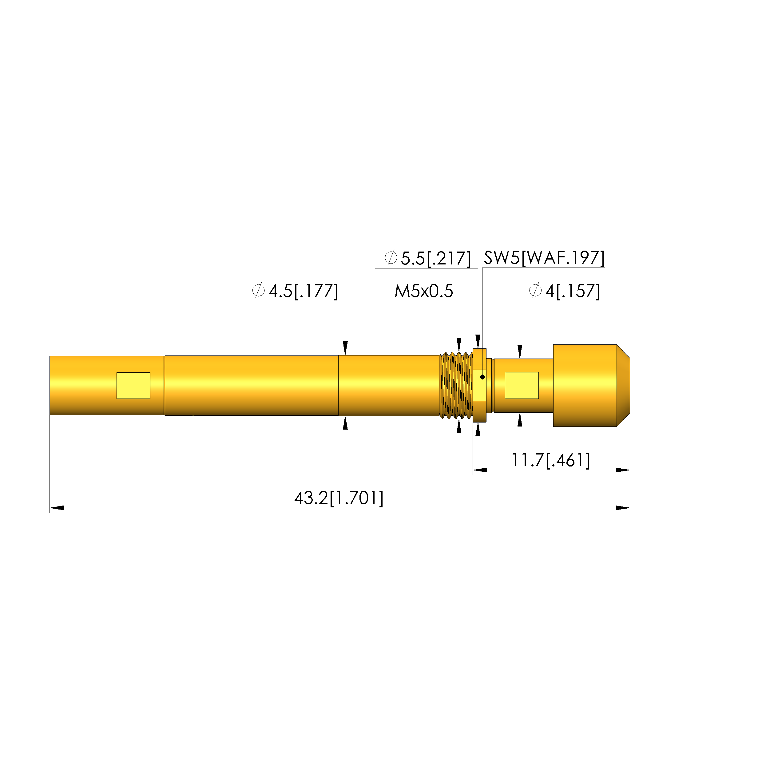 - Outer conductor maximum stroke: 5 mm [.196 in]