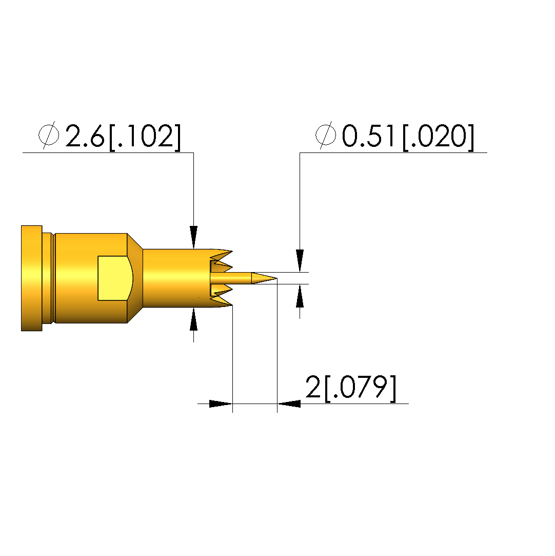 - Outer conductor tip style diameter: 2.6 mm [.102 in]