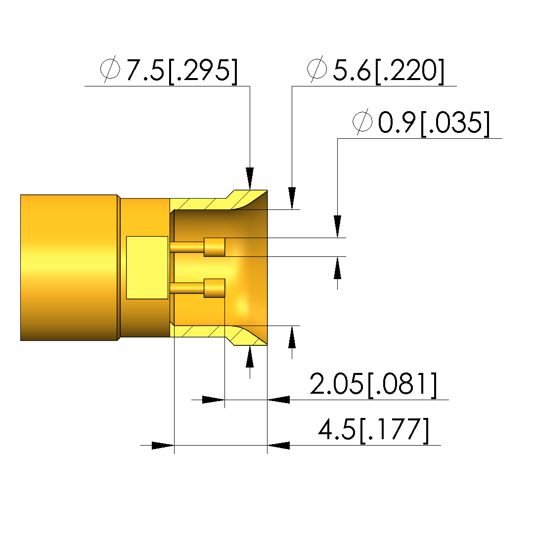 - Outer conductor tip style diameter: 7.5 mm [.295 in]