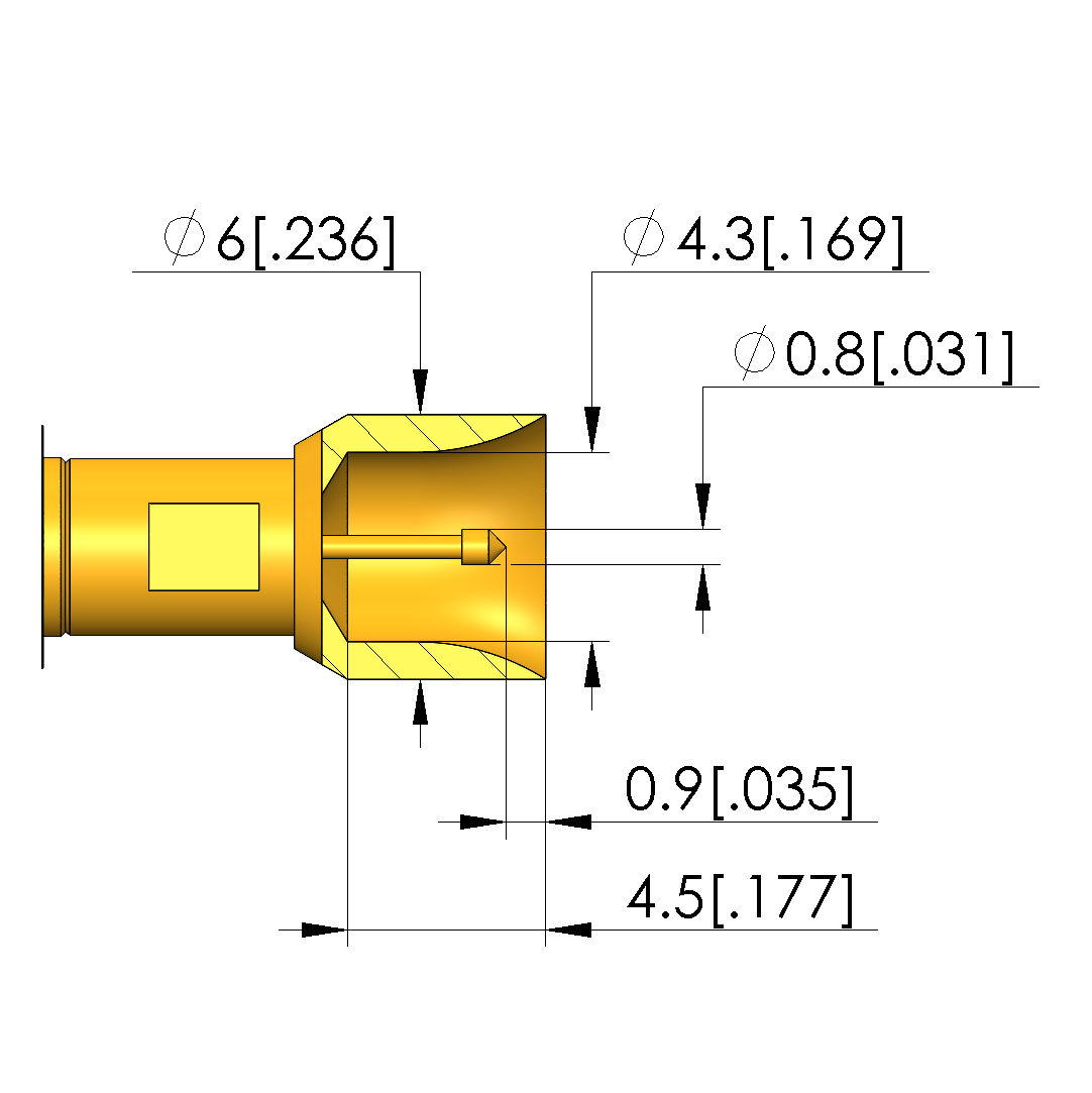 - Outer conductor tip style diameter: 6 mm [.236 in]