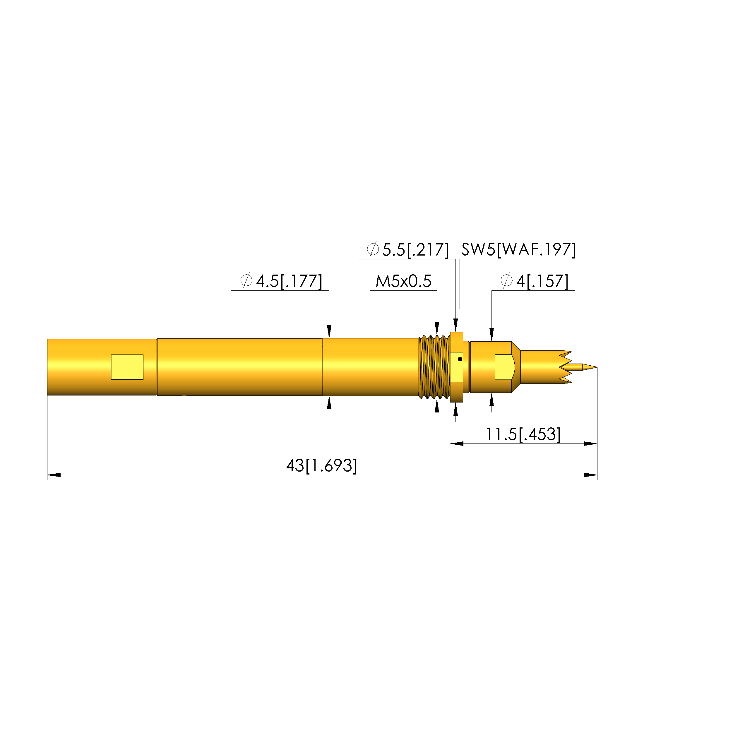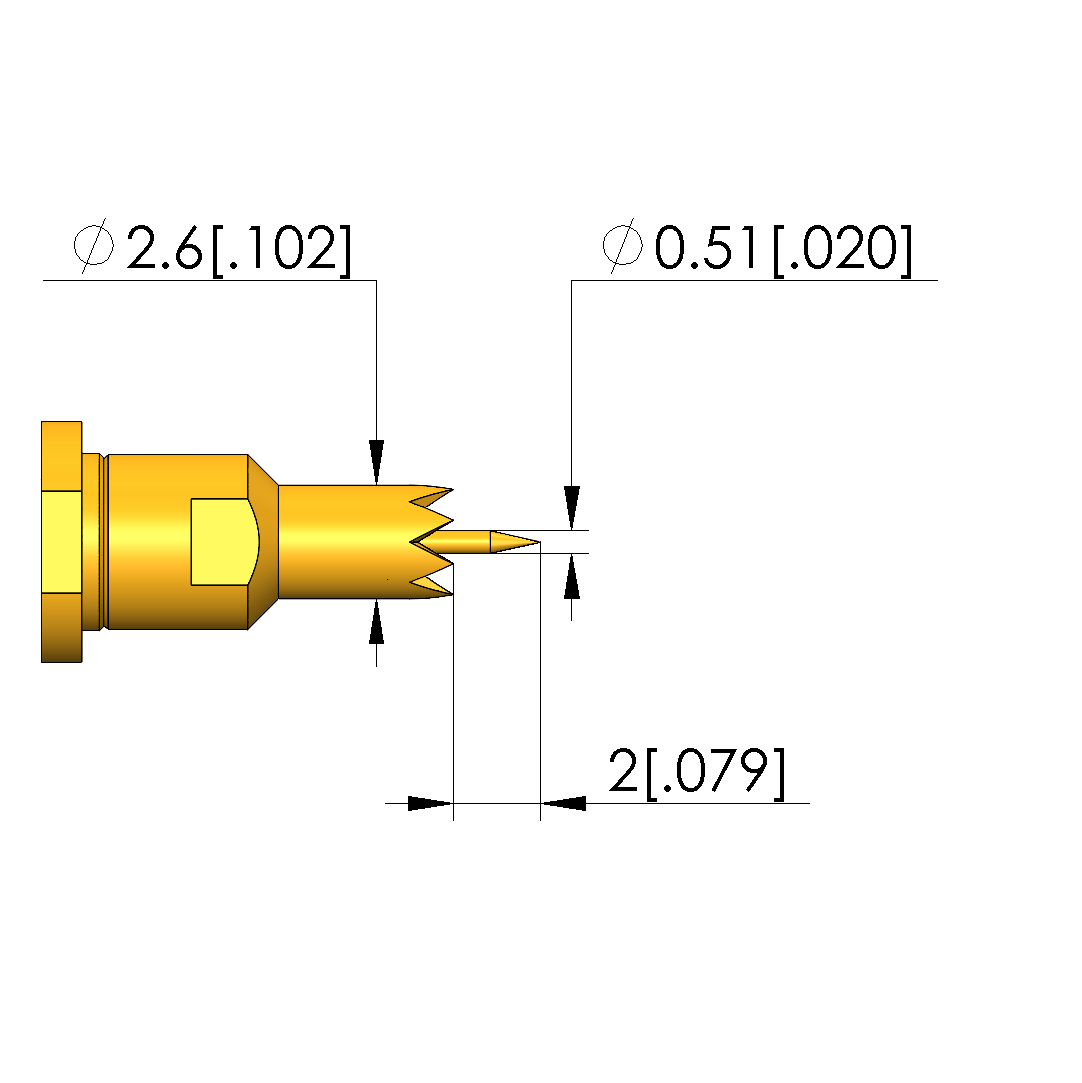 - Outer conductor tip style diameter: 2.6 mm [.102 in]