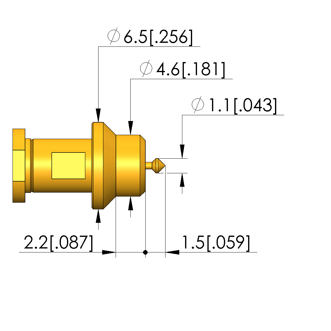 - Outer conductor tip style diameter: 6.5 mm [.255 in]