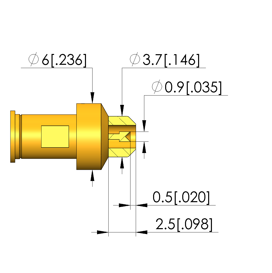 - Inner conductor tip style diameter: 0.9 mm [.035 in]