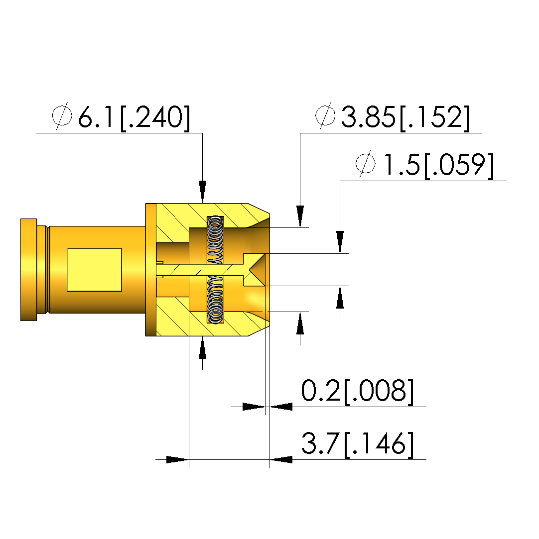 • Spring force of each inner conductor at working stroke: 1.3 N [4.67 ozf]