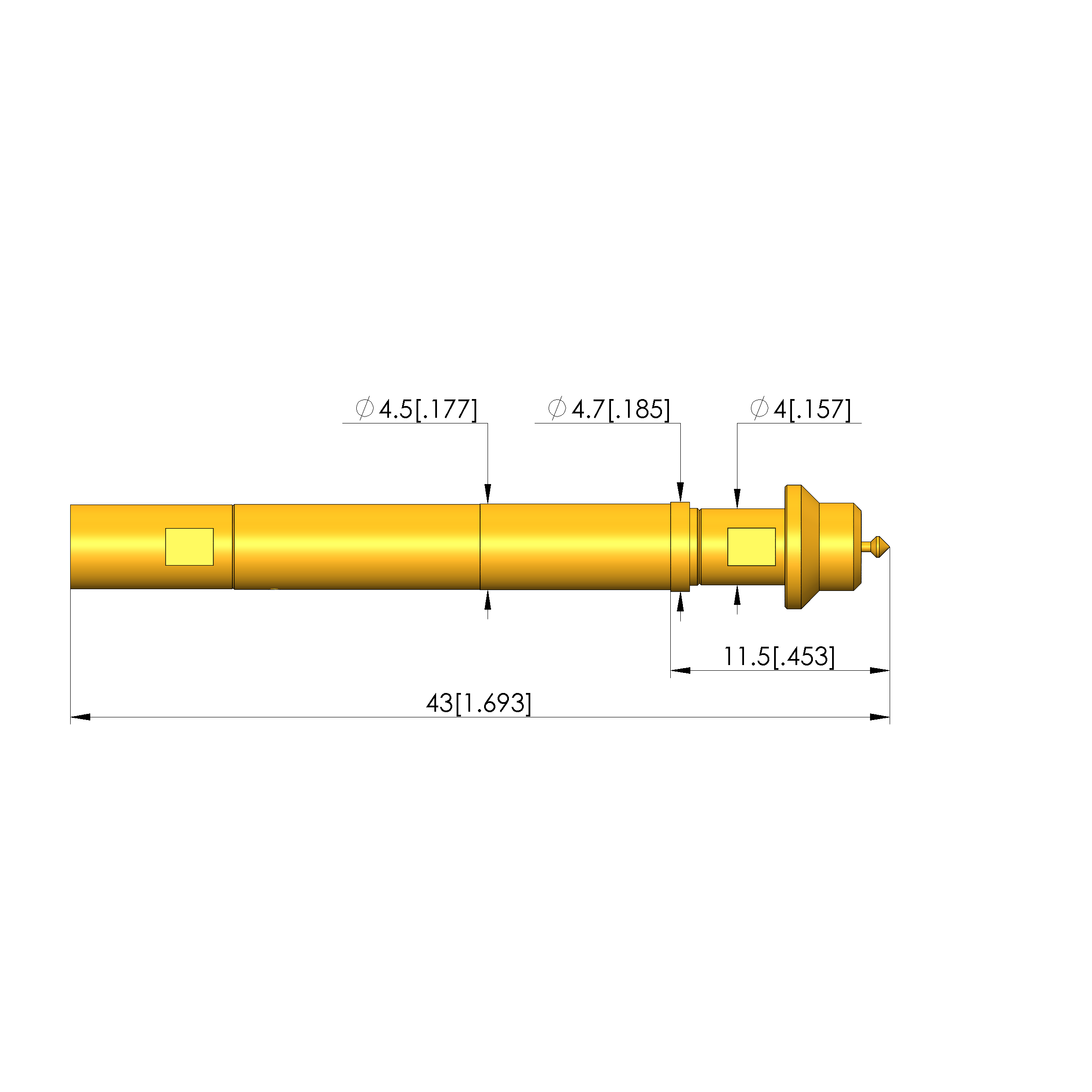 - Barrel diameter: 4.5 mm [.177 in]