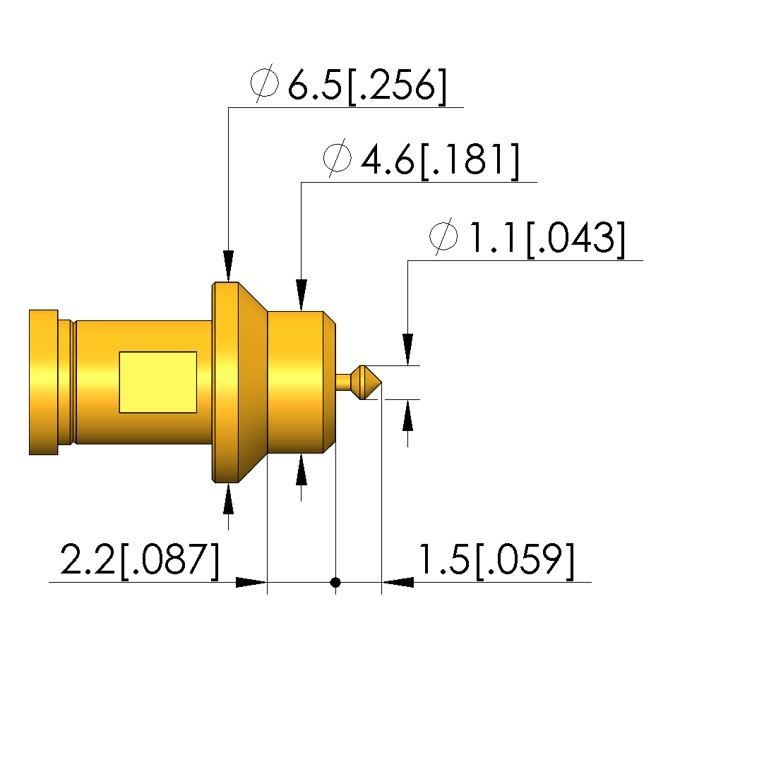 - Outer conductor tip style diameter: 6.5 mm [.255 in]