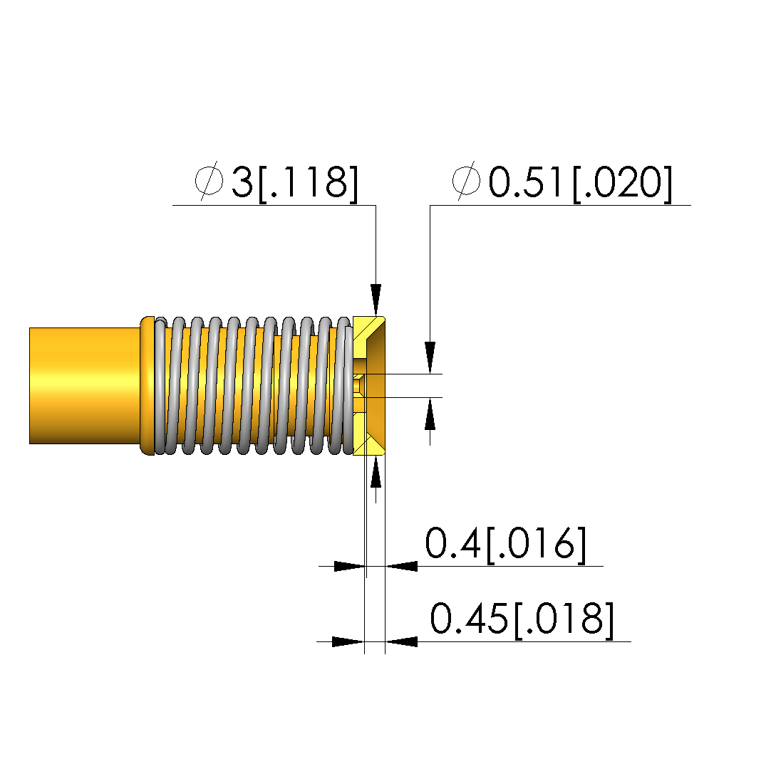 - Spring force of each inner conductor at working stroke: 1 N [3.59 ozf]