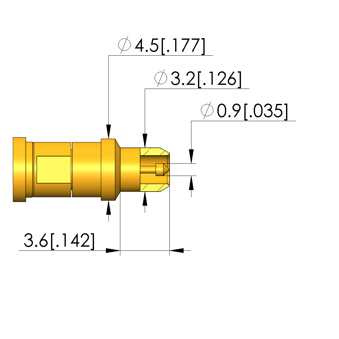 - Inner conductor tip style diameter: 0.9 mm [.035 in]