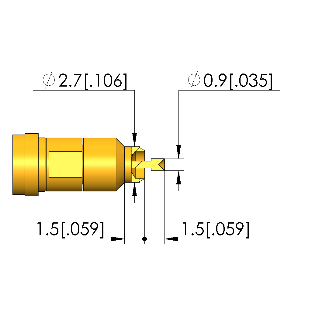 - Outer conductor tip style diameter: 2.7 mm [.106 in]