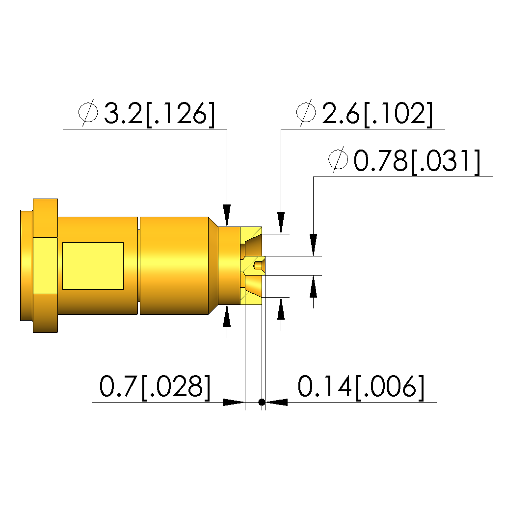 - Inner conductor tip style diameter: 0.78 mm [.03 in]