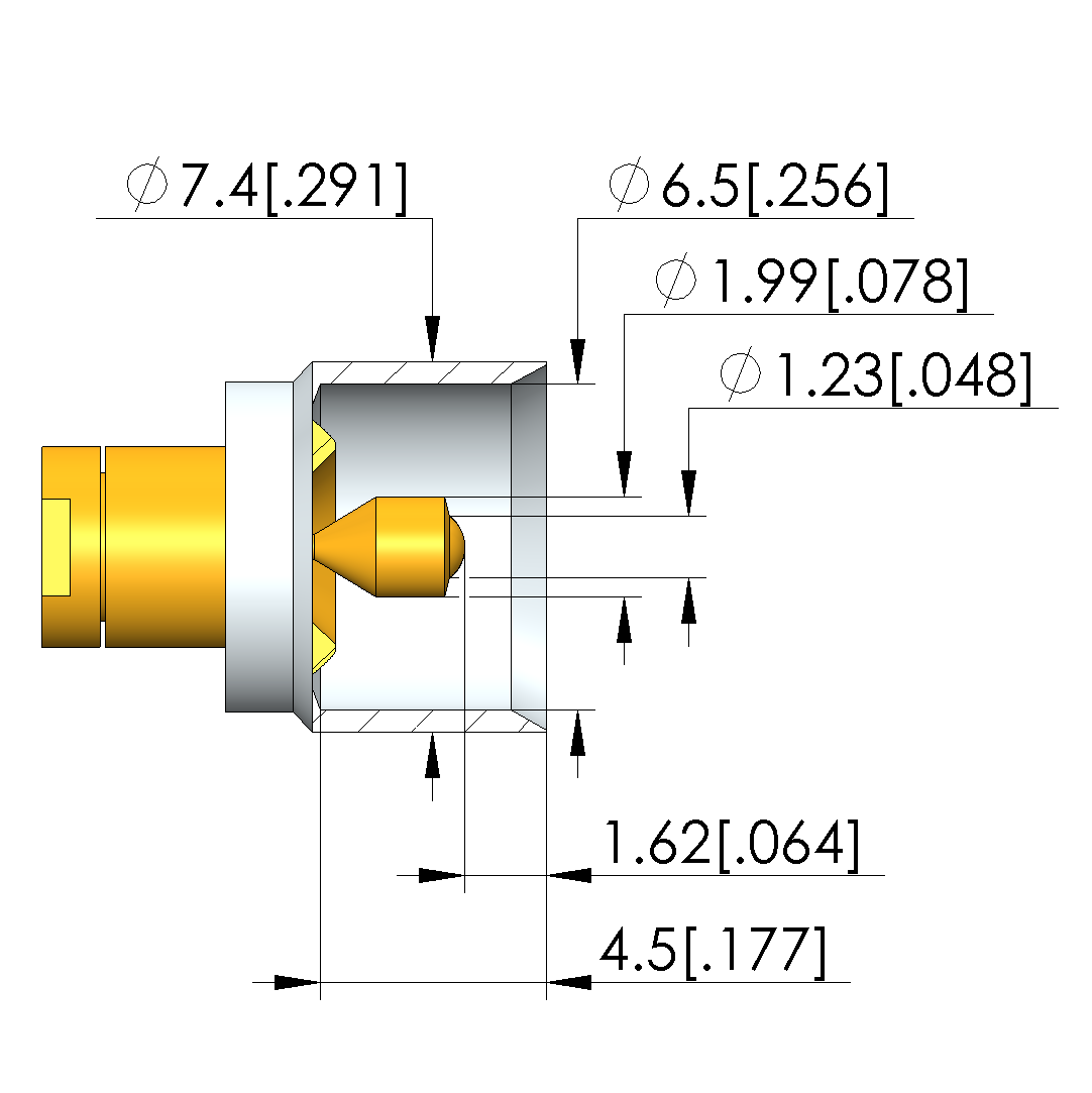 • Outer conductor tip style diameter: 7.4 mm [.291 in]