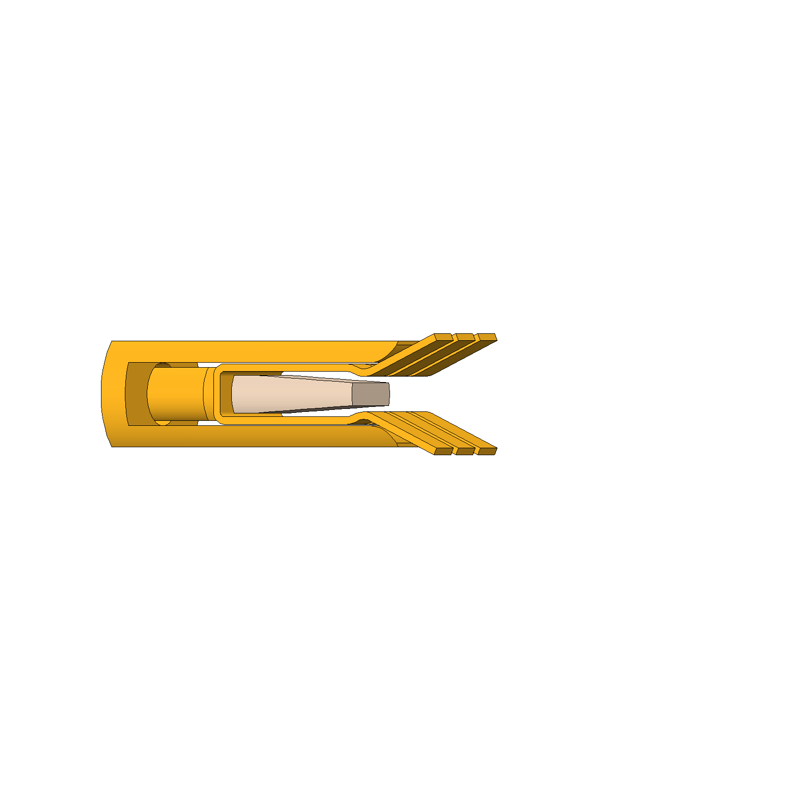 - During the contacting process the contact lamellae are pressed against the flat connector blades without scratching.