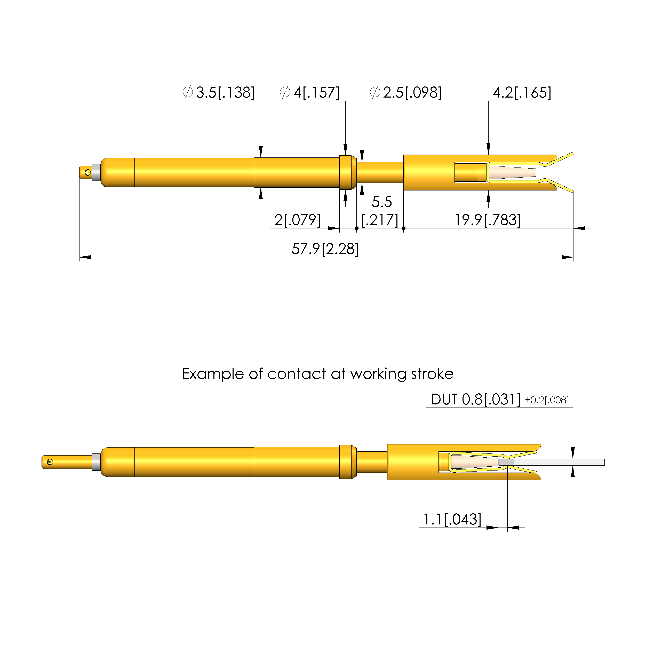 - Maximum stroke: 5.5 mm [.216 in]