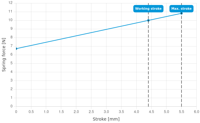 - Spring force at working stroke: 10 N [35.9 ozf]