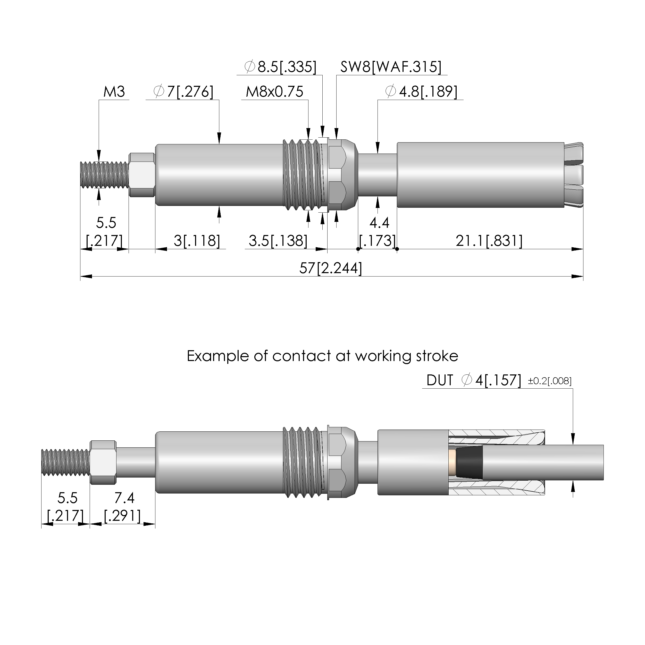 - Maximum stroke: 5.5 mm [.216 in]