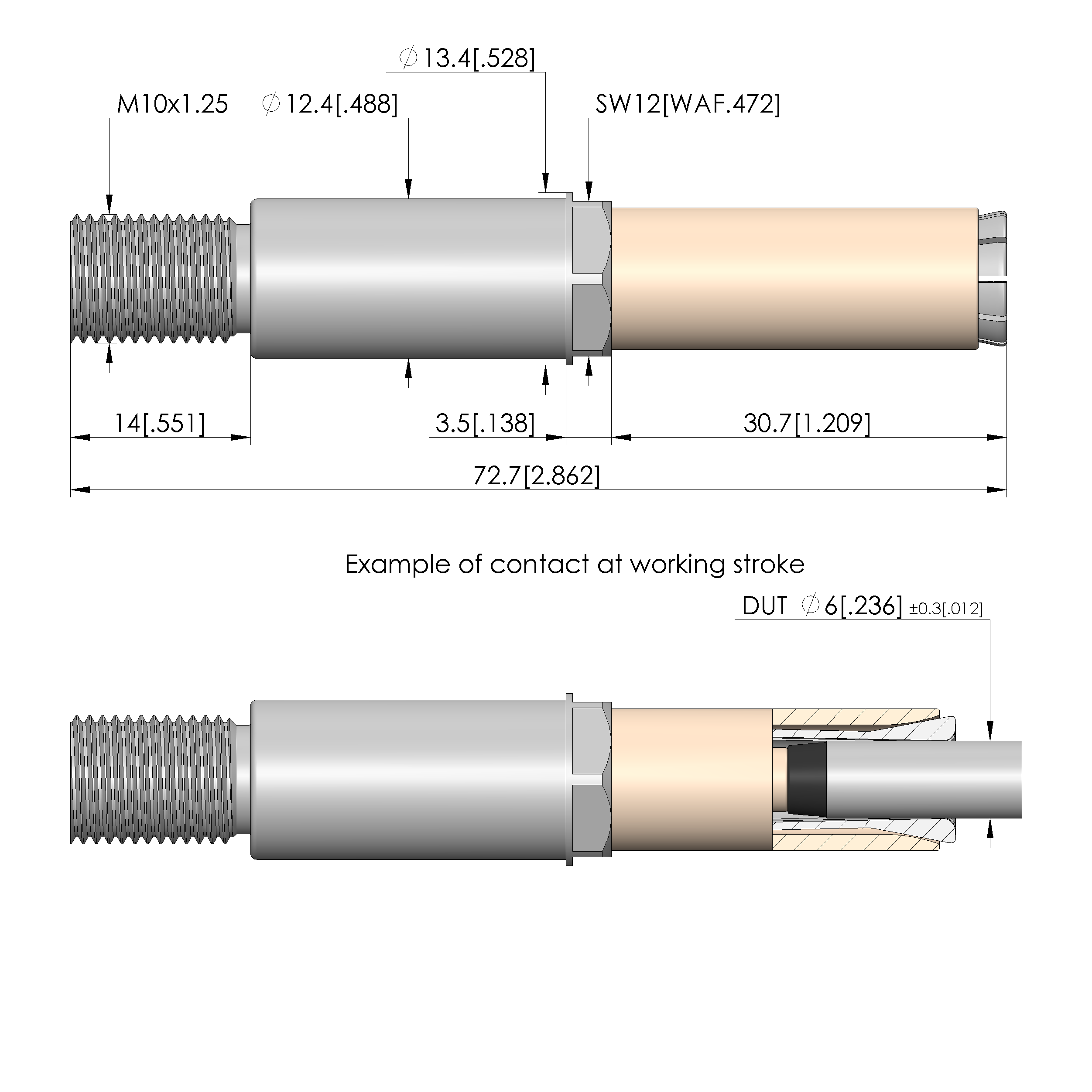 • Barrel diameter: 12.4 mm [.488 in]