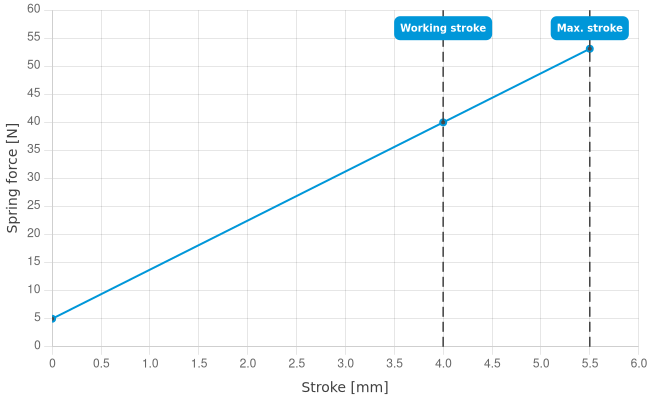 • Spring force at working stroke: 40 N [143 ozf]