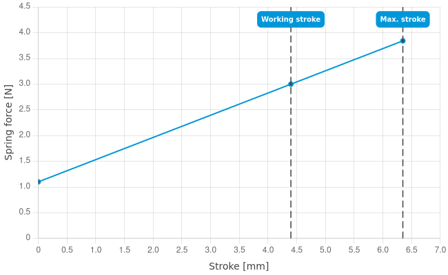 | Spring force at working stroke: | 3 N [10.7 ozf] |