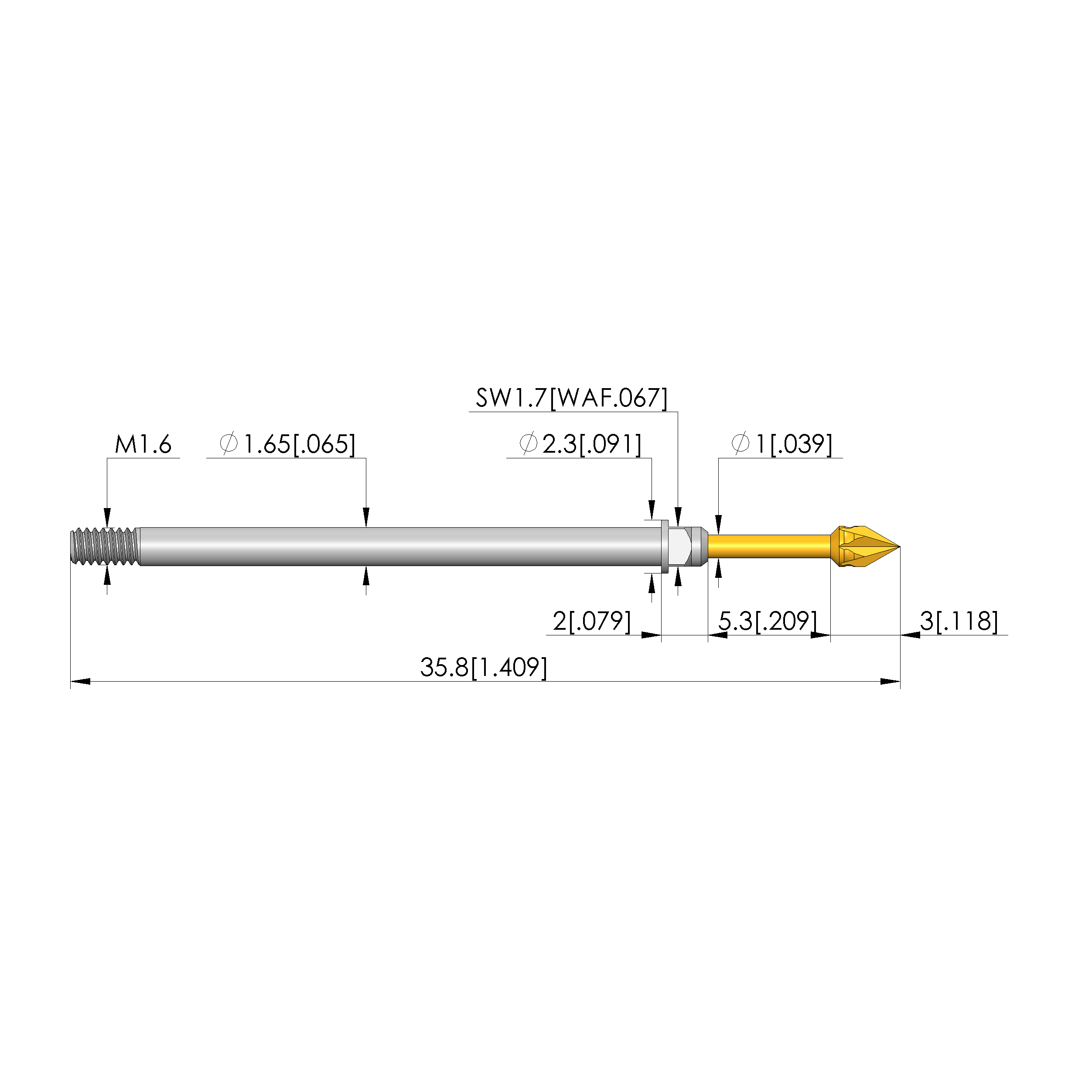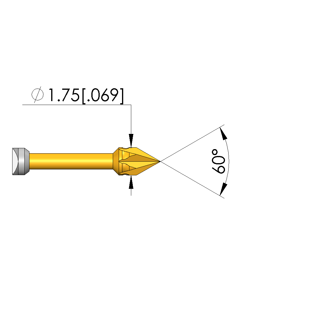 - Tip diameter: 1.75 mm [.068 in]