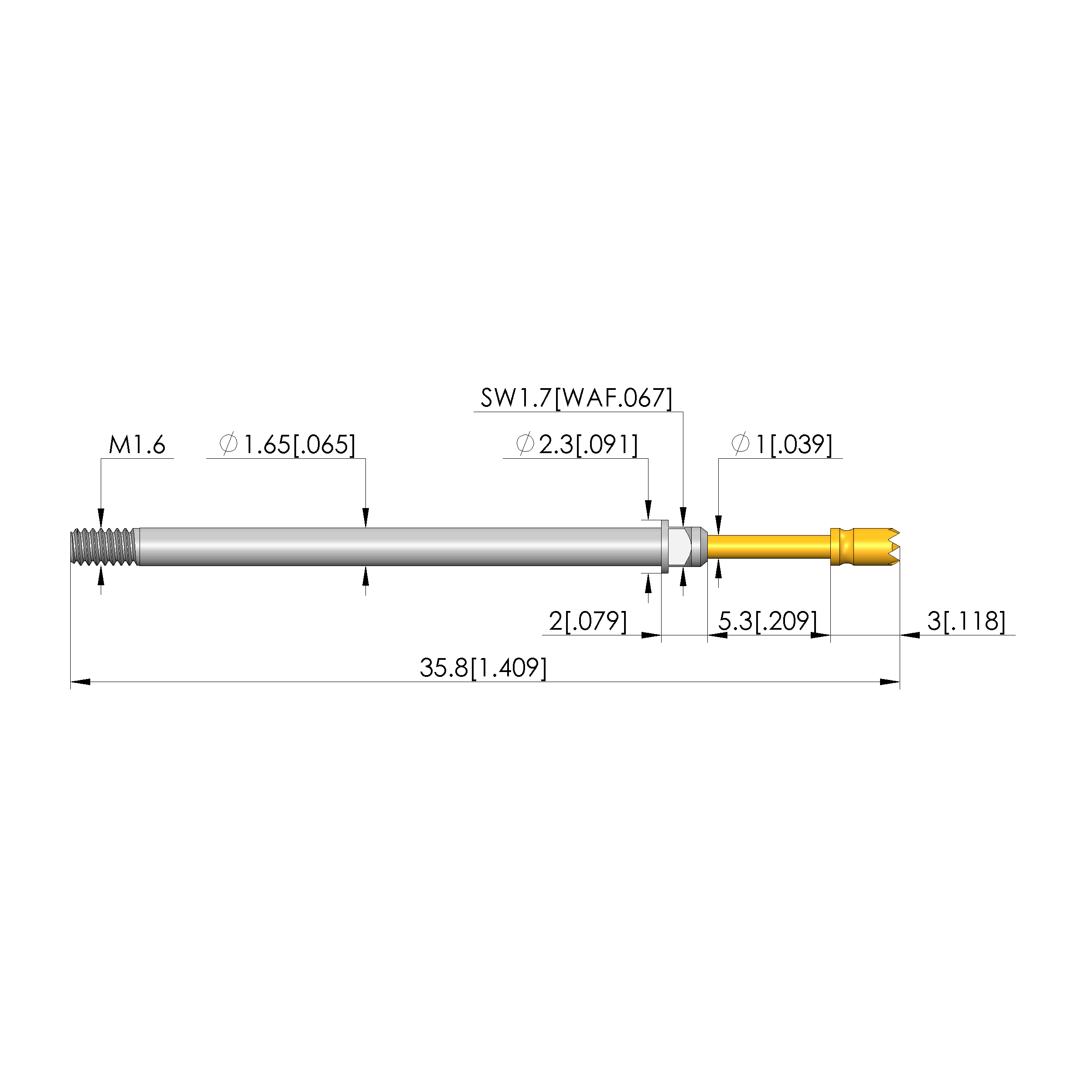 - Barrel diameter: 1.65 mm [.064 in]