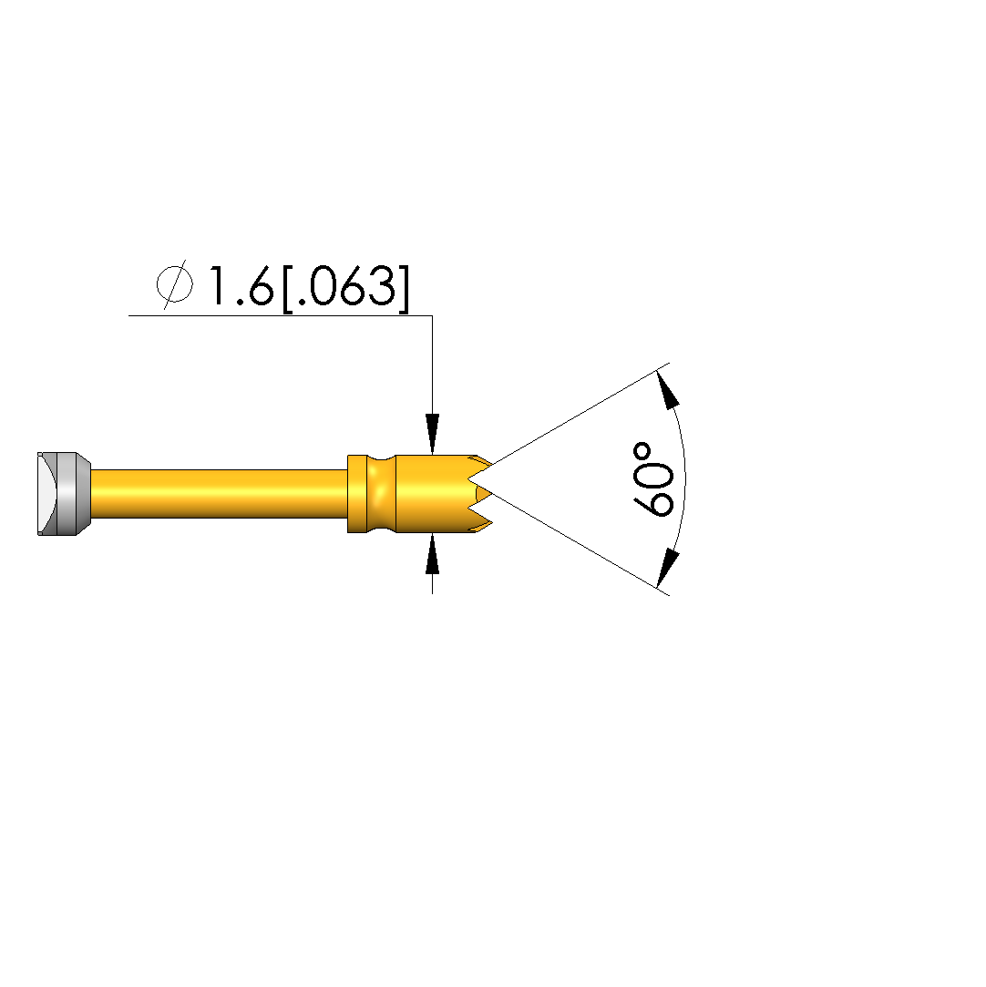 - Tip diameter: 1.6 mm [.062 in]