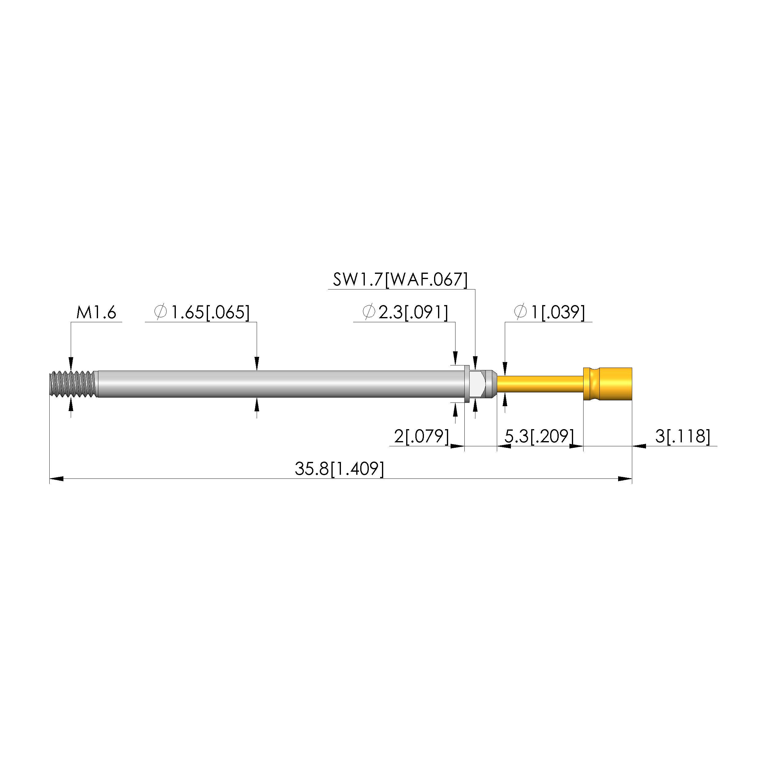 - Barrel diameter: 1.65 mm [.064 in]