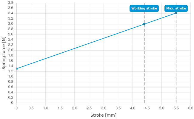 • Spring force at working stroke: 3 N [10.7 ozf]