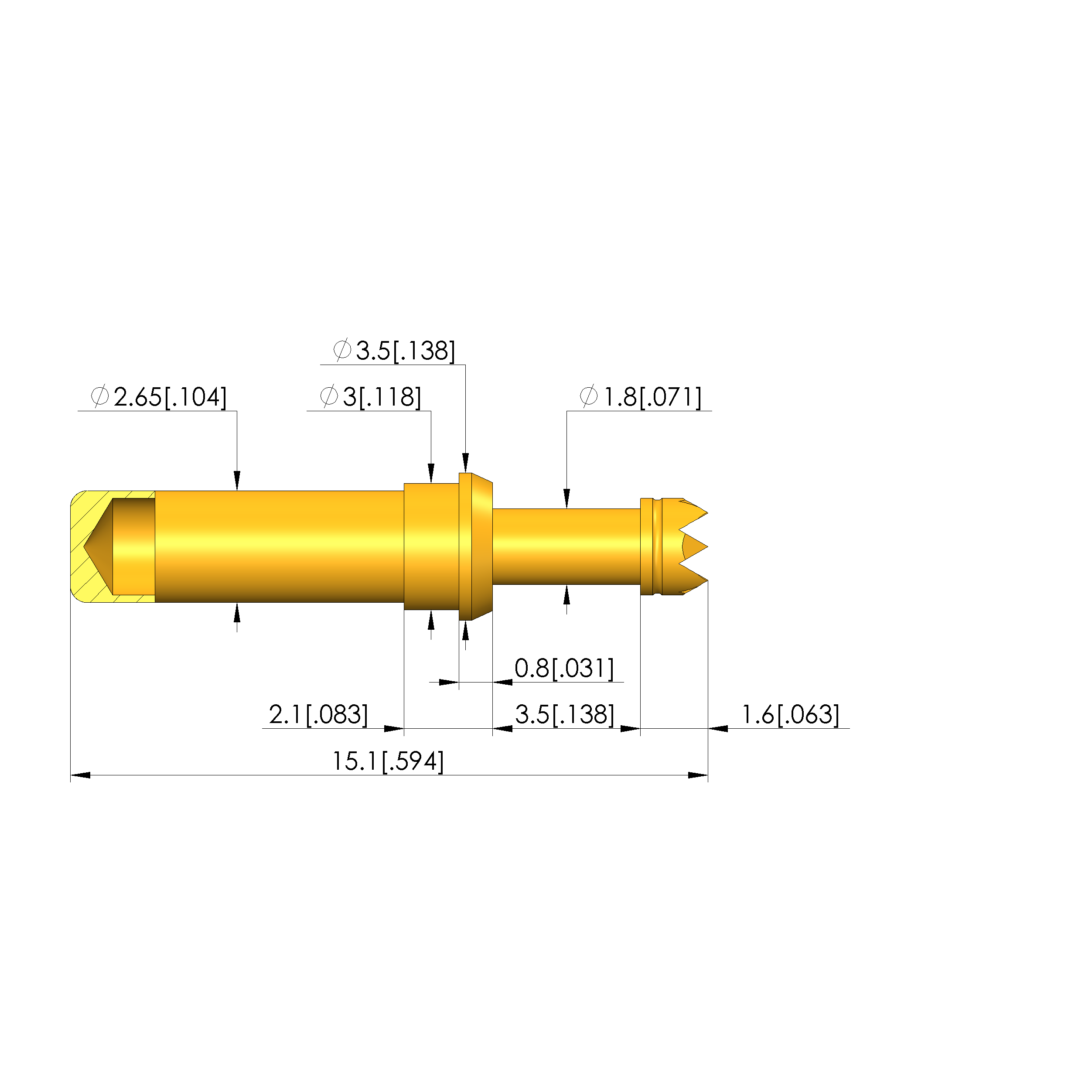 - Barrel diameter: 2.65 mm [.104 in]