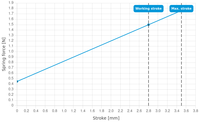 - Spring force at working stroke: 1.5 N [5.39 ozf]