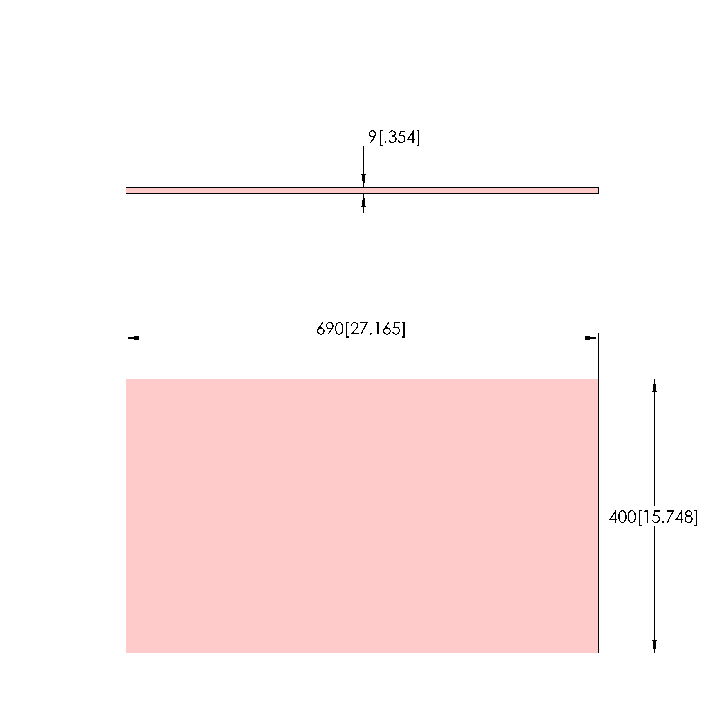 - Outer dimensionS (WxDxH): 690 x 400 x 9 +/- 3 mm