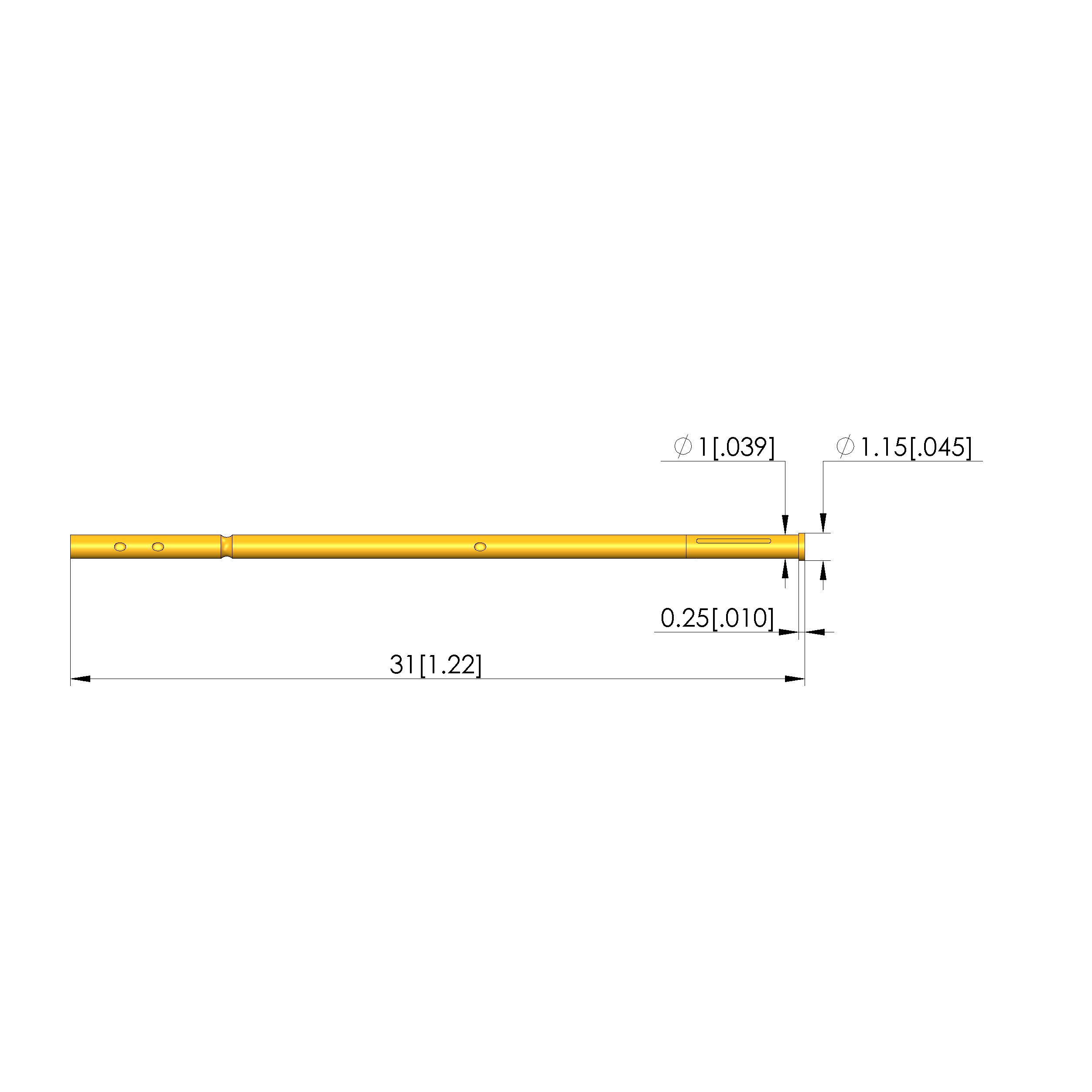 - Outer diameter: 1 mm [.039 in]