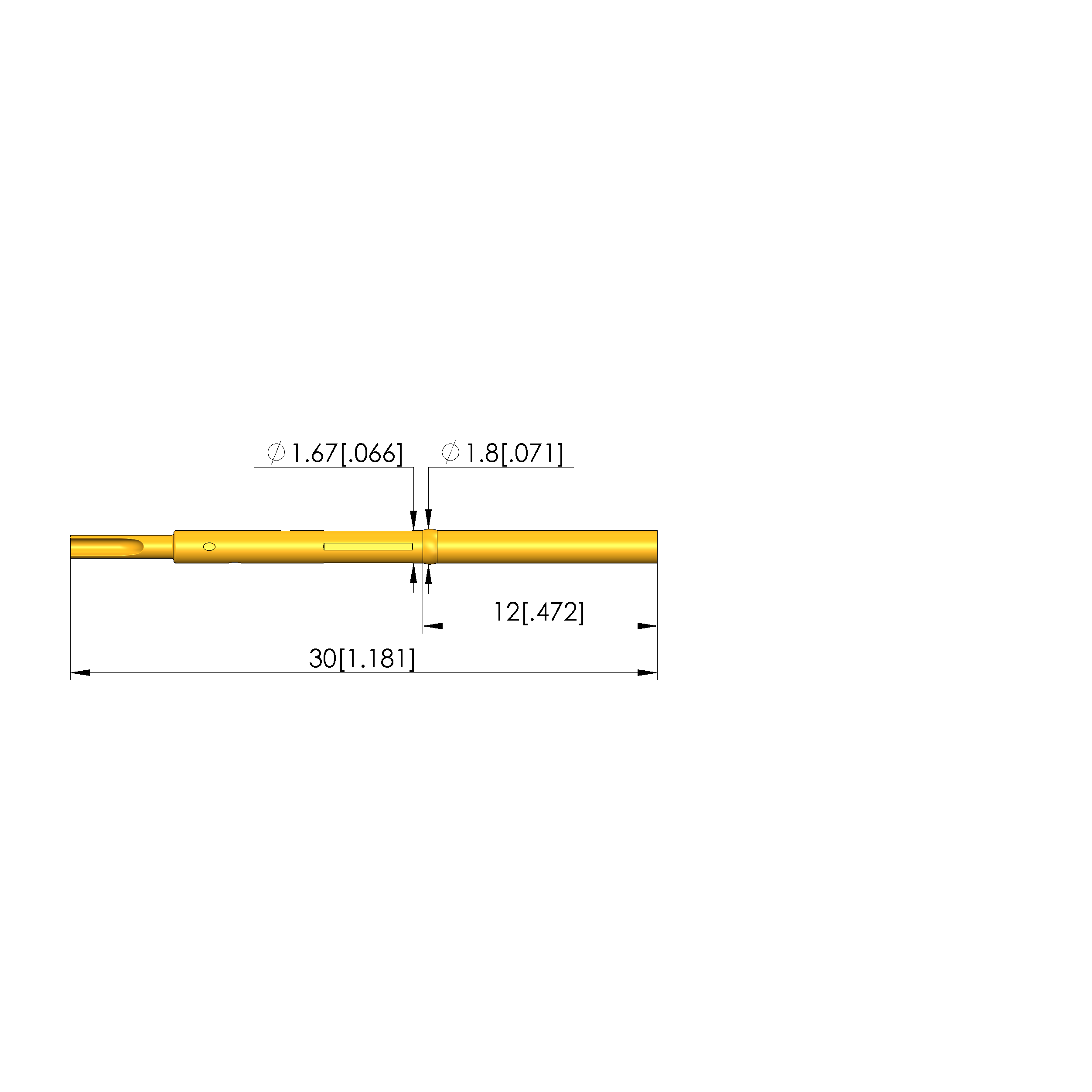 • Total length: 30 mm [1.18 in]