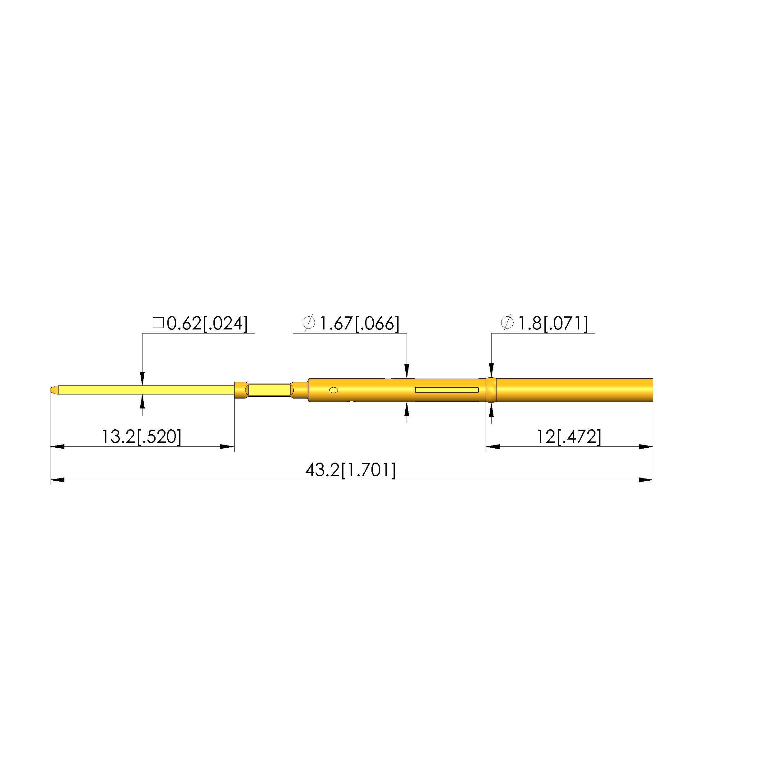• Total length: 43.2 mm [1.7 in]