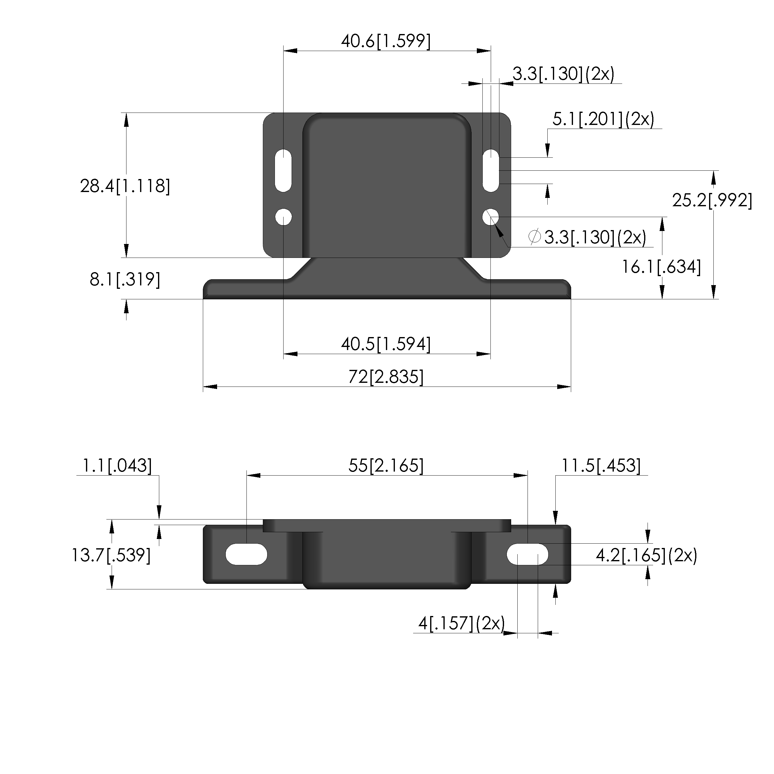 - Outer dimensionS (WxDxH): 72 x 11.5 x 36.5 mm [2.83 x .452 x 1.43 in]