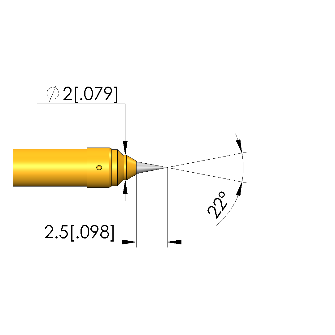 • Tip diameter: 2 mm [.078 in]